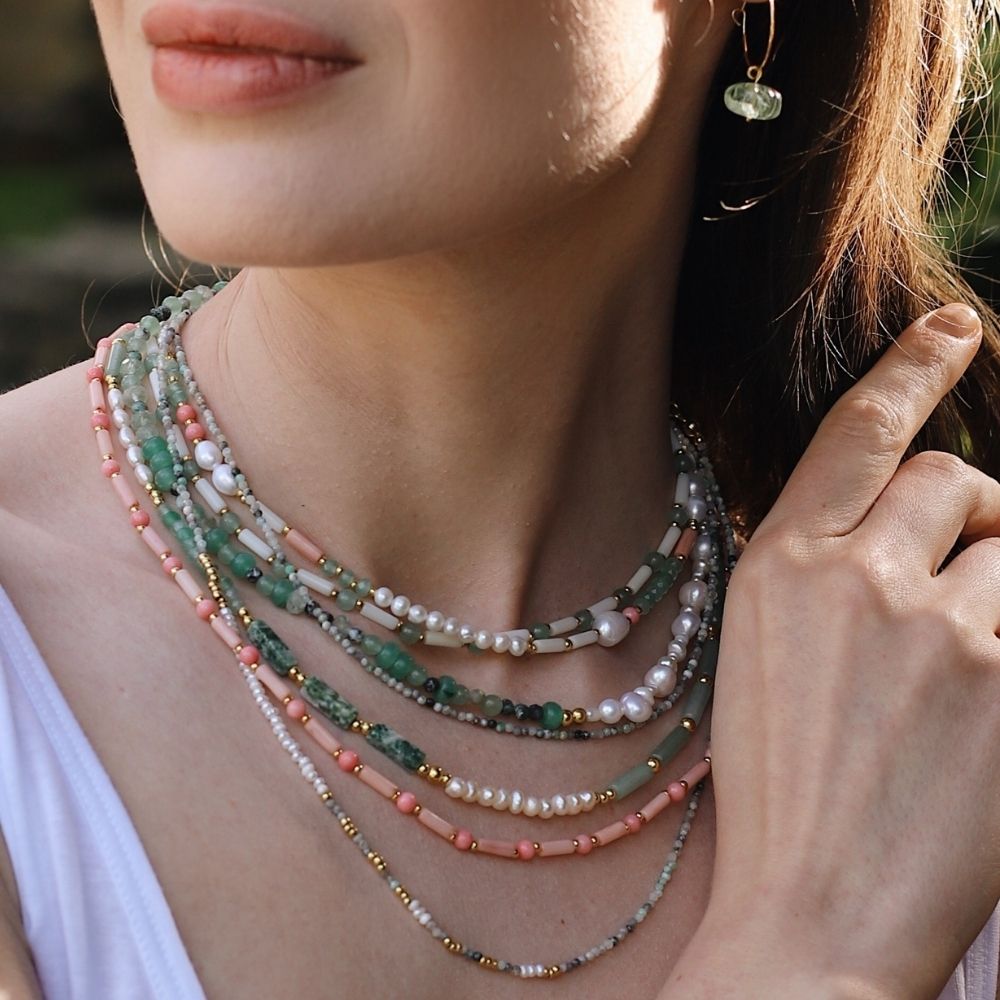 Farrah Zümrüt & Aventurin & Yosunlu Akik & İnci Kolye | Double Trouble Collection